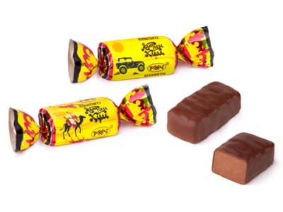 Soft praline on the base of cashew nuts and cocoa butter with adding of ground cocoa and caramel crumbs.