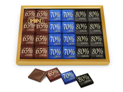 Assorted chocolate is a mix of dark and milk chocolate in stylish packaging (80% cocoa products, 65% cocoa products, 45% cocoa products and 30% cocoa products). The total content of cocoa products is not less than 56%.