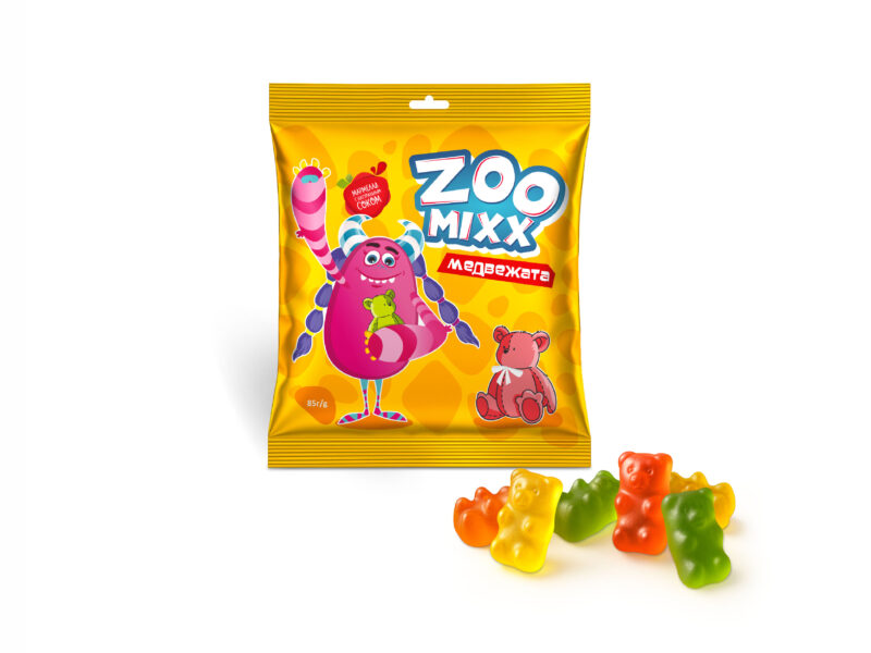 Құрамы: сірне, қант, ылғал сақтағыш агент – сорбит; желе жасағыш – желатин; қышқылдықты реттегіш – лимон қышқылы; табиғи алма шырыны; жылтыратқыш: пальма майы, карнауба балауызы; хош иістендіргіштер; тағамдық бояғыштар: куркумин; шалғам, лимон, қара қарақат концентраты, сафлор сығындысы, Е133.