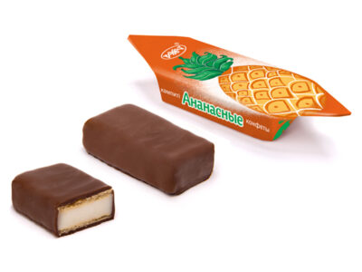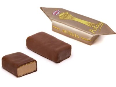 Пралине с добавлением какао порошка, с ароматом ванили между двумя слоями вафель, срок хранения: 6 месяцев.